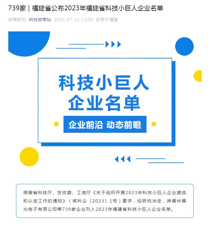 5657威尼斯(中国)有限公司公司荣获“2023年福建省科技小巨人”声誉称呼