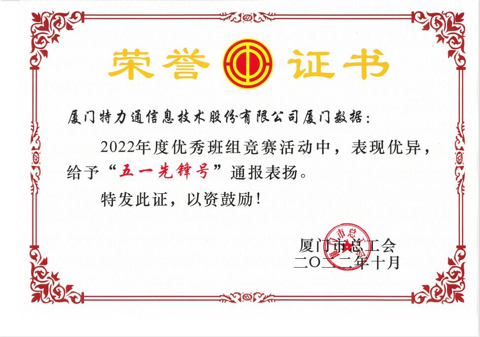 5657威尼斯(中国)有限公司公司-厦门数据部分荣获2022年度“五一先锋号”声誉称呼