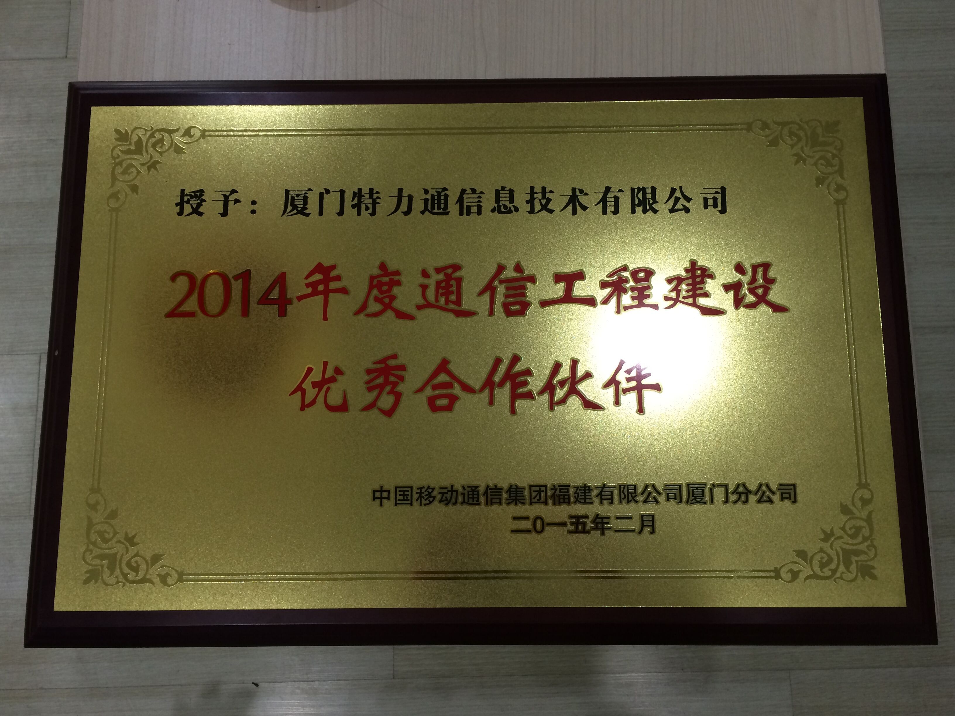 2015年05月 2014年度通讯工程建设优异相助同伴
