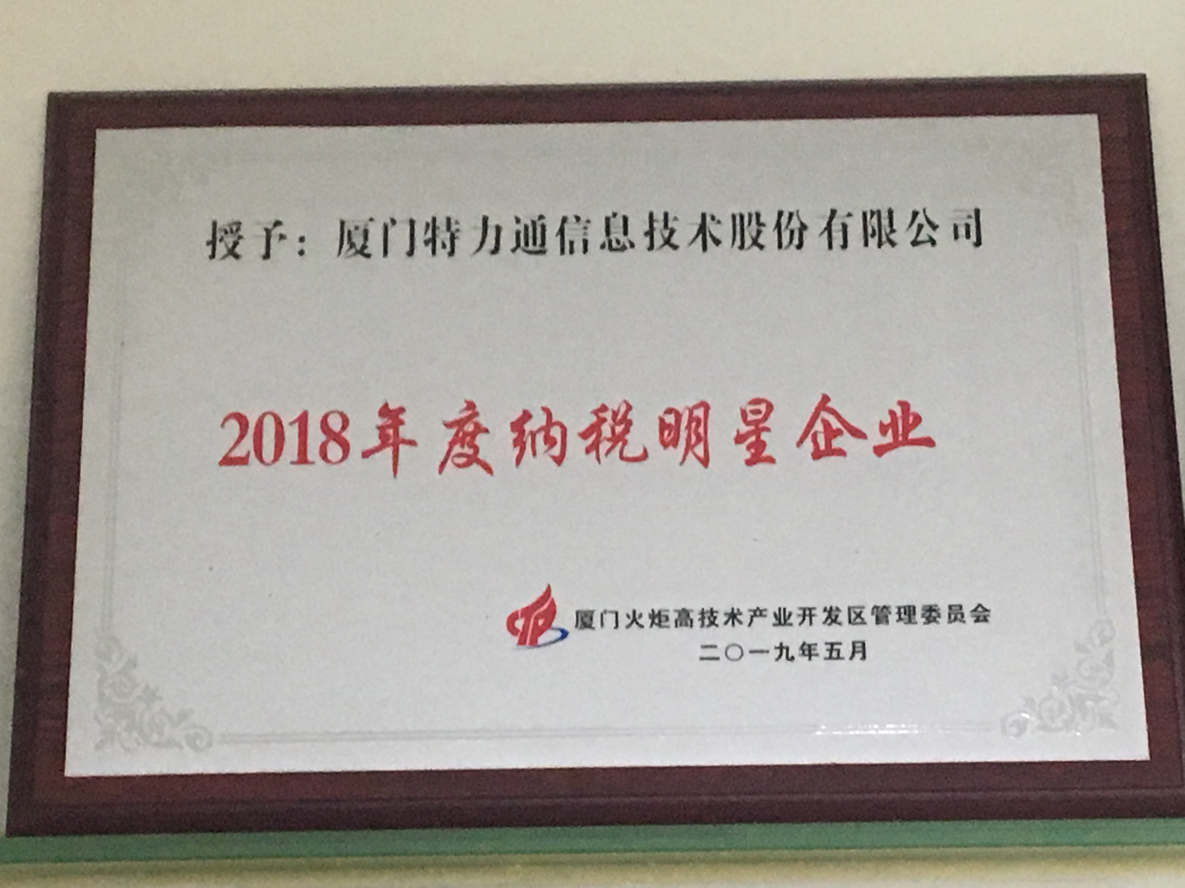 2019年05月 2018年度纳税明星企业